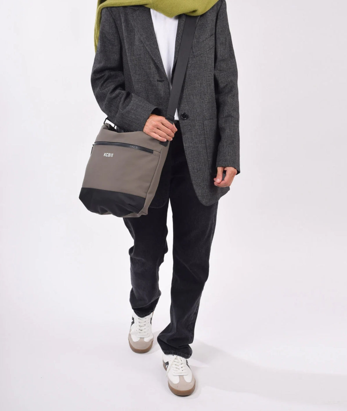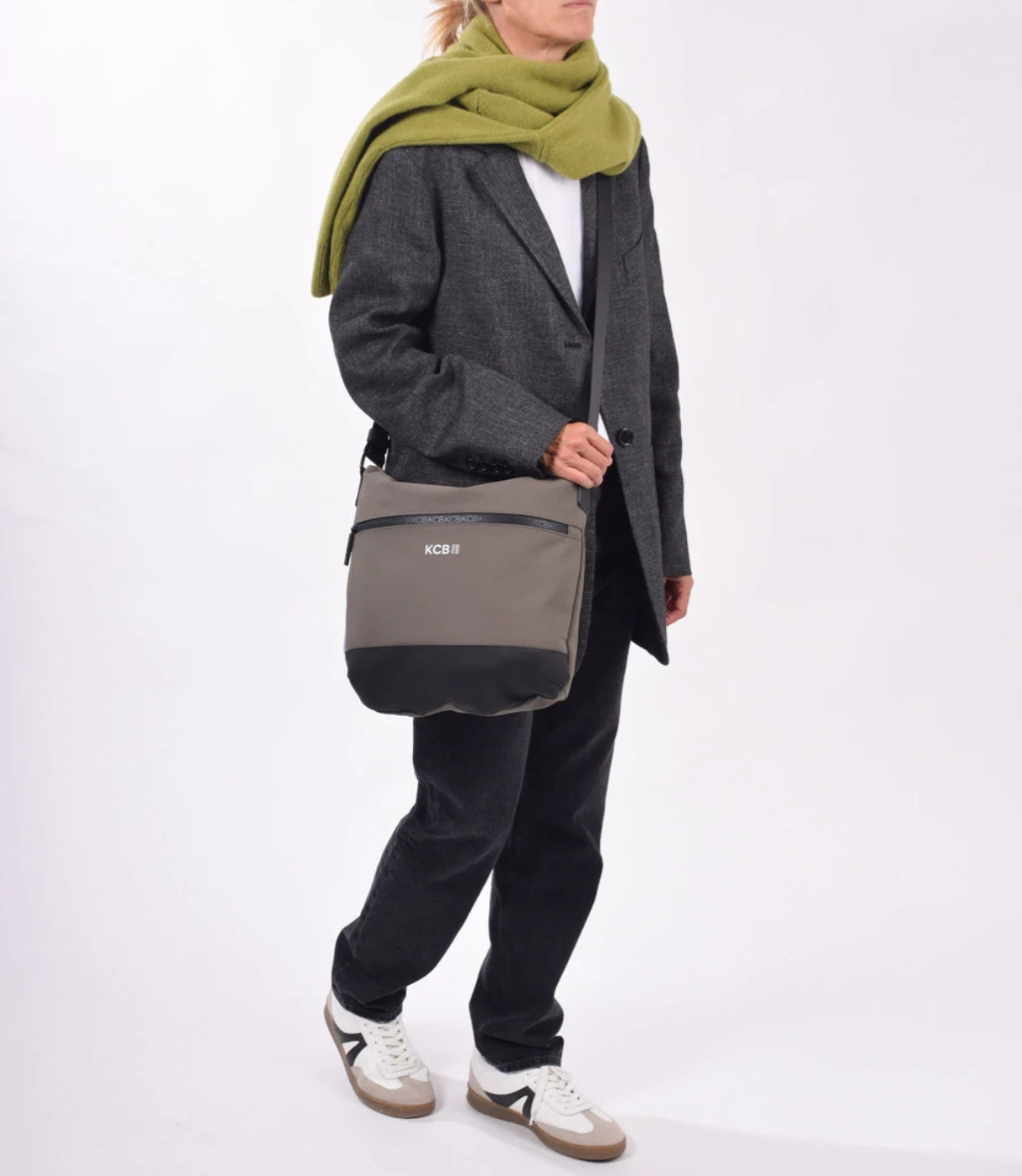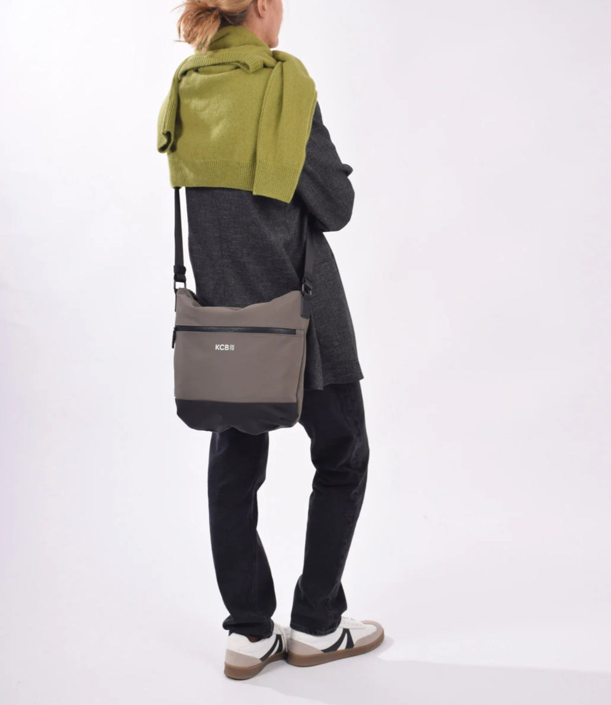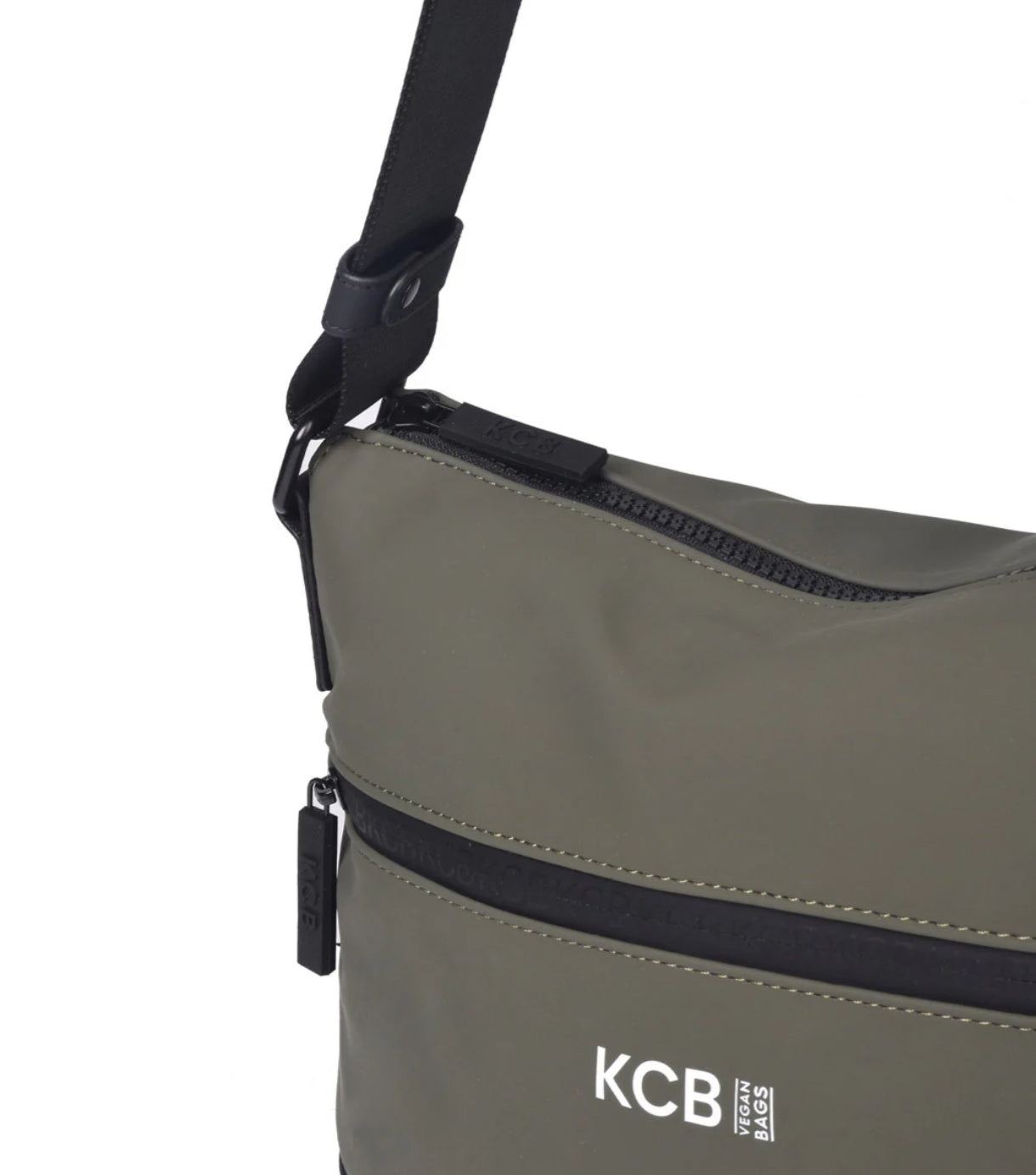 La bandolera grande KCB Base cuenta en su exterior con dos bolsillos con cremallera, uno en la parte delantera y otro en la trasera. En su interior dispone de dos bolsillos abiertos y un tercero con cremallera.