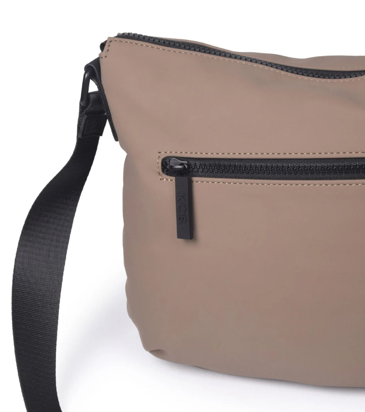 La bandolera grande KCB Base cuenta en su exterior con dos bolsillos con cremallera, uno en la parte delantera y otro en la trasera. En su interior dispone de dos bolsillos abiertos y un tercero con cremallera.
