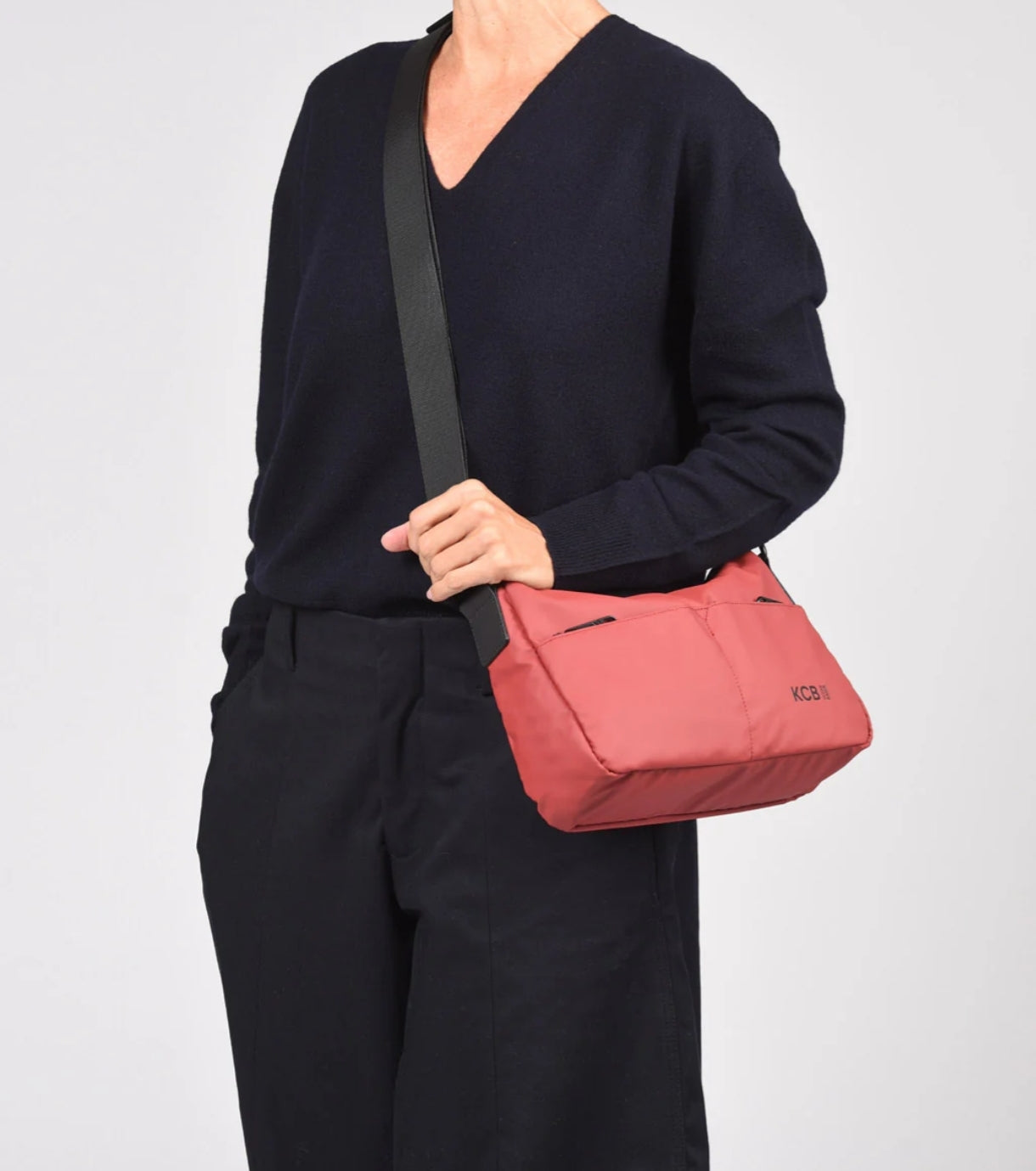 La bandolera Dual de KCB cuenta con dos bolsillos principales con cremallera. En su interior tiene dos bolsillos abiertos y uno con cremallera. En la parte externa cuenta con 3 bolsillos con cremallera, dos en la parte delantera y uno en la trasera.