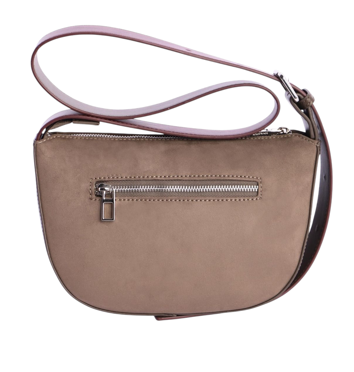 Bolso de hombro o bandolera gracias a su asa regulable en altura. Original bolso en forma de semicírculo con un amplio fondo que te permitirá llevar todas tus pertenencias. Cierre de cremallera. Fabricado en suave antelina. Bolso que une funcionalidad, estilo y comodidad.