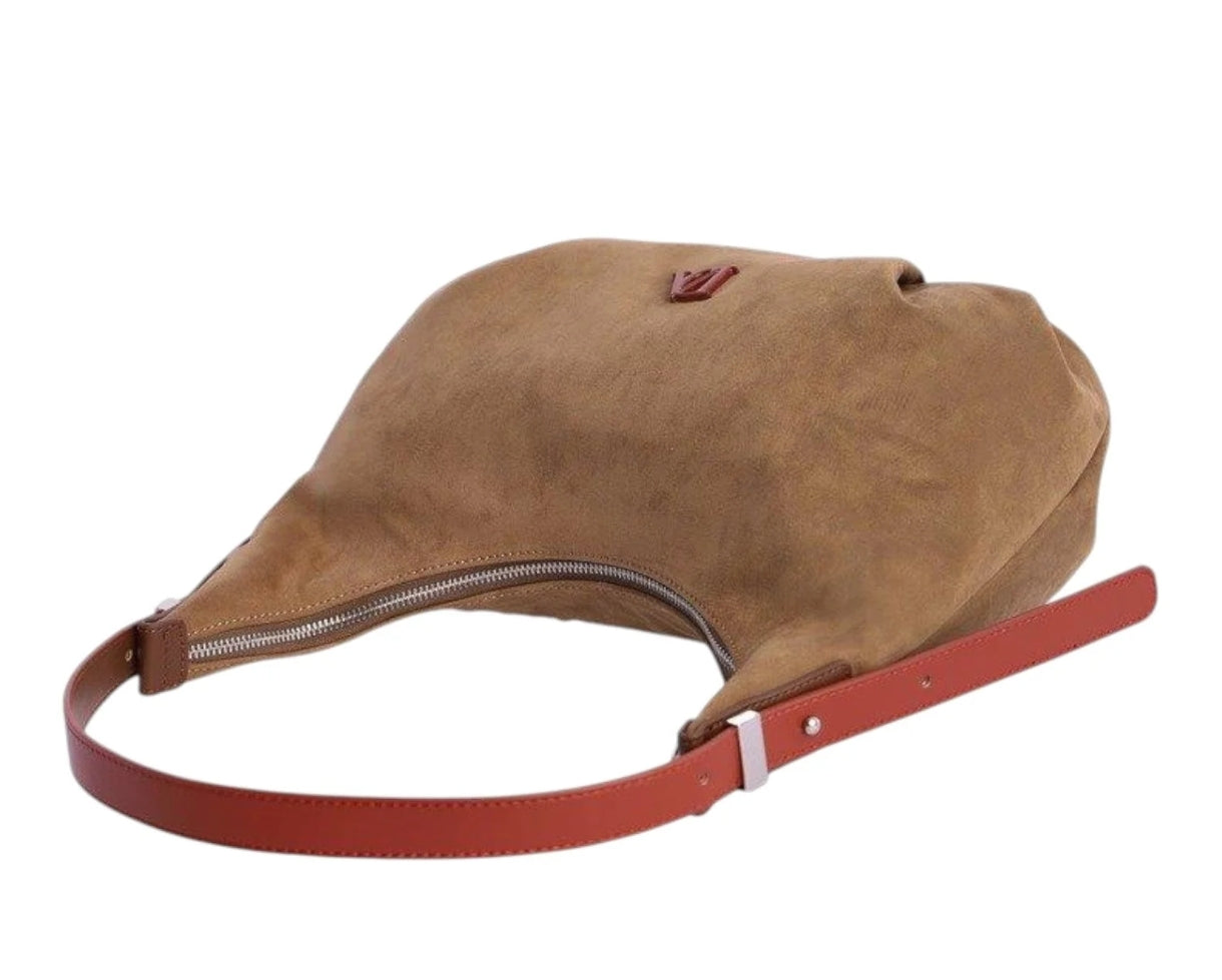 Bolso tipo góndola con cierre cremallera. Confeccionado en antelina suave. Bandolera regulable en altura.