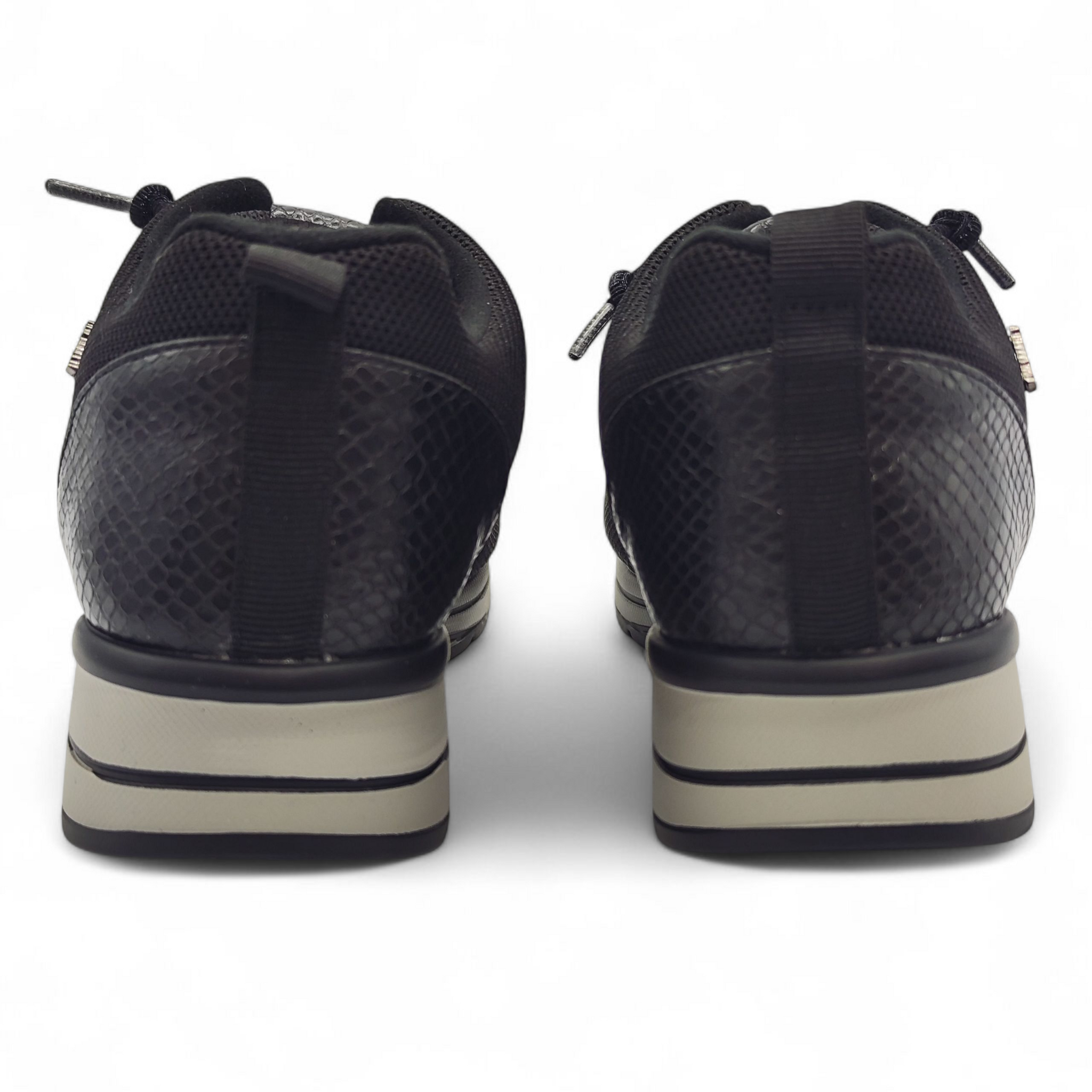 Zapatilla textil con membrana impermeable. Cierre con goma. Detalle en serpiente al tono de la zapatilla en el talón.