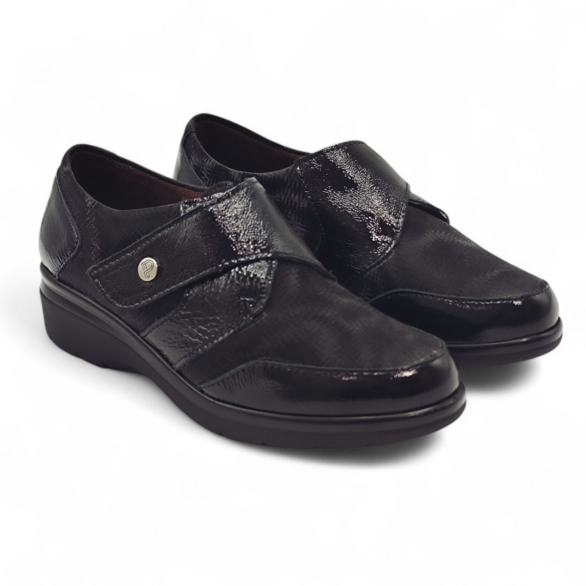 Zapato con cierre velcro en el empeine que facilita el calce.